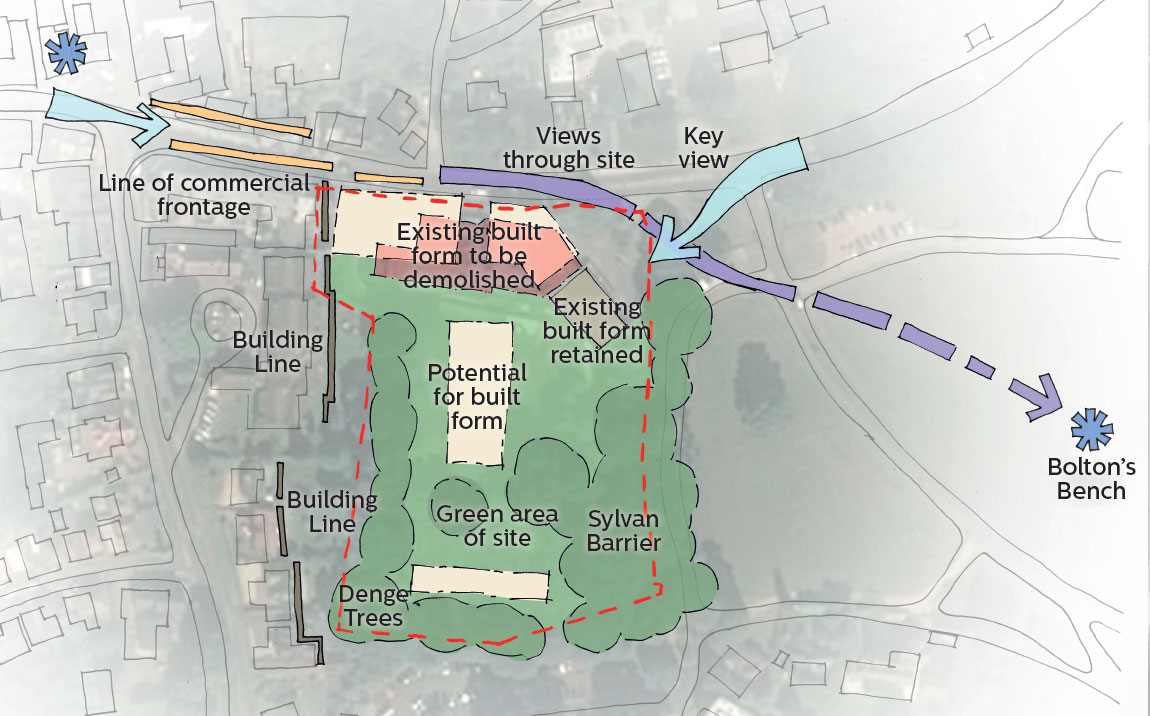 The residential elements of the proposed built form will be set back from the High Street and staggered to allow for a connection to Bolton’s Bench.