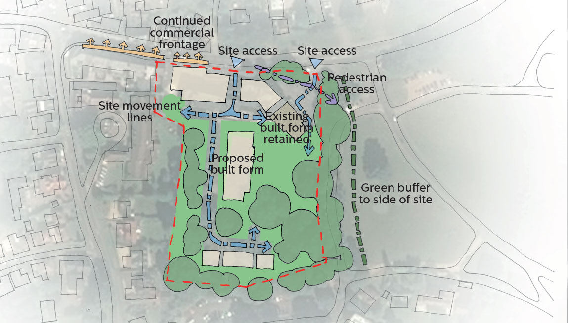 The proposal will provide a defined continuation of the High Street frontage and seeks to complete the street scene through the development of the site.